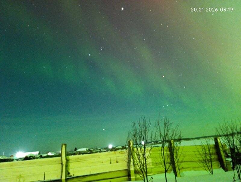 По словам тех, кто застал это явление, в этот раз сияние было особенно эффектным - оно развернулось прямо над головой и довольно быстро пропало. Фото: t.me/sargatskoeomsk Новости Омска в Max. Подписаться