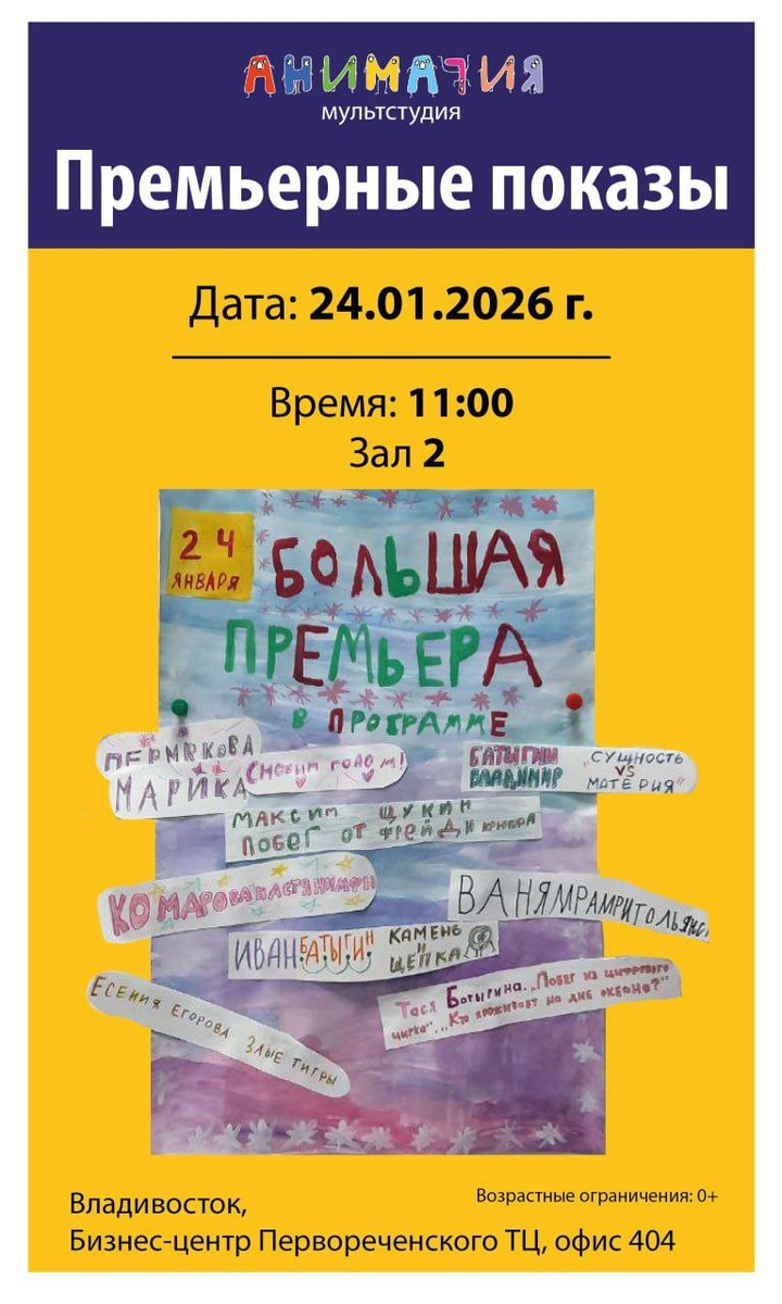 Дорогие друзья! В субботу, 24 января состоятся Премьерные показы авторских мульфильмов, снятых нашими студентами за первое полугодие творческого сезона 25-26 года. Приглашаем вас!