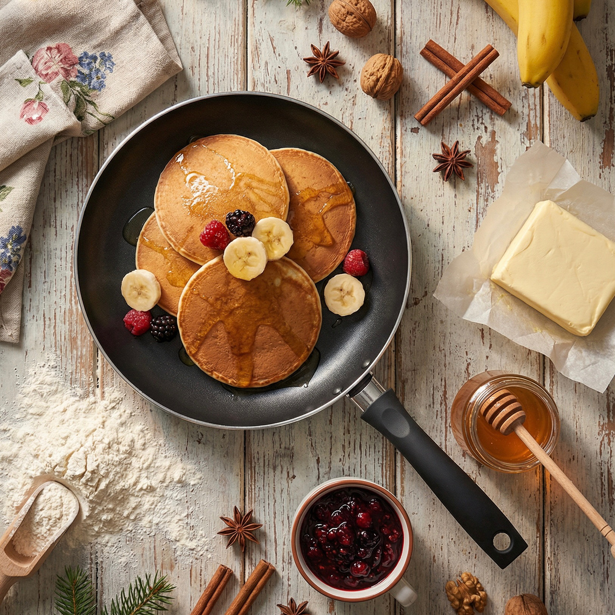 Потрясающе вкусные, нежные и ароматные панкейки, которые готовятся за считанные минуты — идеальный завтрак из простых ингредиентов. 🥞💛 ✅ банан — 1 шт. (спелый) ✅ яйцо — 1 шт. ✅ мука рисовая / пшеничная — 2 ст. л. ✅ разрыхлитель — 0,5 ч. л. ✅ мёд, орехи — по желанию для подачи ▪️ Банан очищаем и разминаем вилкой в пюре. ▪️ Добавляем яйцо, перемешиваем до однородной массы. ▪️ Всыпаем муку и разрыхлитель, ещё раз перемешиваем. Тесто должно получиться немного гуще, чем на оладьи. ▪️ Разогреваем сковороду для блинов линейки KUMIR,