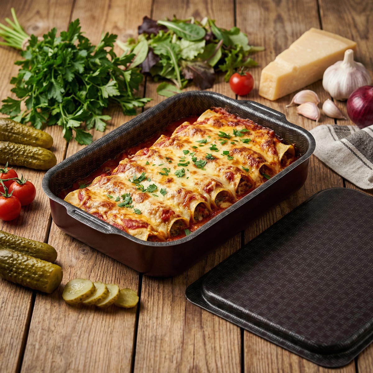 Очень сытное, уютное блюдо в духовке: макароны, фарш, много сыра и ароматный томатный соус. Идеальный вариант горячего для семейного ужина. 🍝💛 ✅ каннеллони — 400 г ✅ фарш свино-говяжий — 800 г ✅ лук репчатый — 2 шт. ✅ морковь — 2 шт. ✅ солёные огурцы — 2 шт. ✅ помидоры — 600 г ✅ твёрдый сыр — 300 г ✅ чеснок — 2 зубчика ✅ соевый соус — 3 ст. л. ✅ майонез — 6 ст. л. ✅ зелень — по вкусу ✅ соль, специи — по вкусу ✅ растительное и сливочное масло — для жарки и смазывания формы ▪️ Каннеллони отвариваем в подсоленной воде 5 минут до полуготовности, затем аккуратно промываем холодной водой и откидываем на дуршлаг. ▪️ Лук чистим и нарезаем кубиками, обжариваем на растительном масле до мягкости. Морковь натираем на крупной тёрке, добавляем к луку и жарим ещё несколько минут. Солёные огурцы нарезаем мелкими кубиками. Сыр трем на крупной тёрке. ▪️ В миске соединяем фарш, обжаренный лук с морковью, огурцы, рубленую зелень, соль и специи, хорошо перемешиваем — это начинка. ▪️ Готовим соус: помидо
