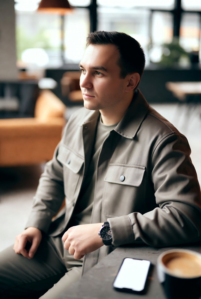 Он убирает телефон в карман.