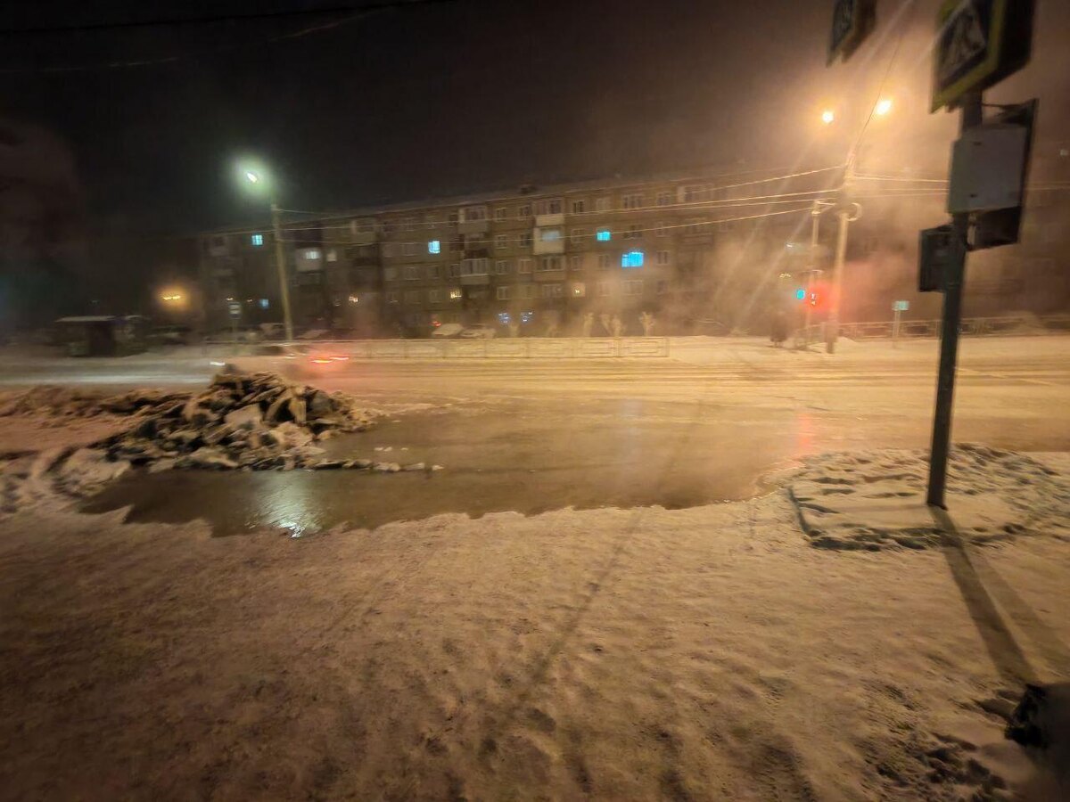 Вода вытекла на проезжую часть возле дома на Железнодорожников, 17