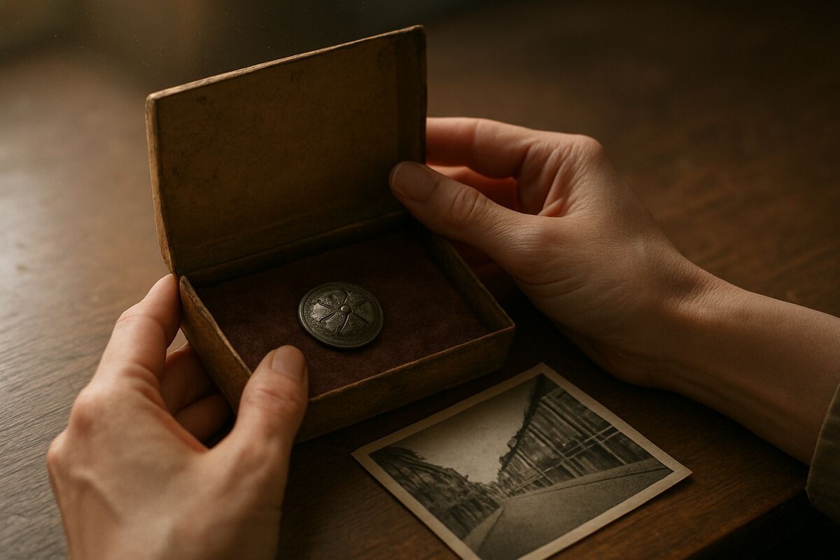 Он протянул ей маленькую коробочку. В ней лежала старая, потускневшая от времени серебряная пуговица с гравировкой в виде цветка.— Это я нашёл во дворе того самого дома в Калуге, когда мы уходили. Не знаю, чья она. Но теперь она — часть этой истории. Твоей истории. Хочешь — оставь её себе.