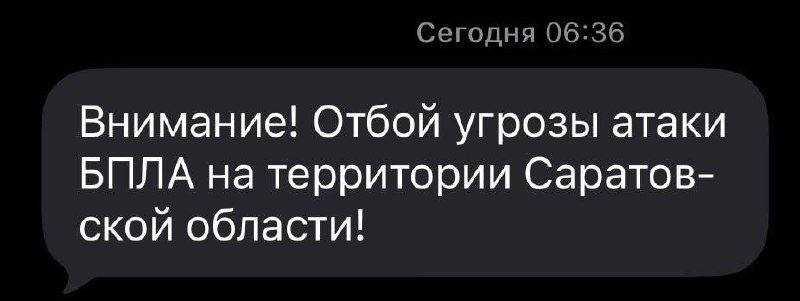 🟢Отбой угрозы атаки беспилотников, на территории Саратовской области.