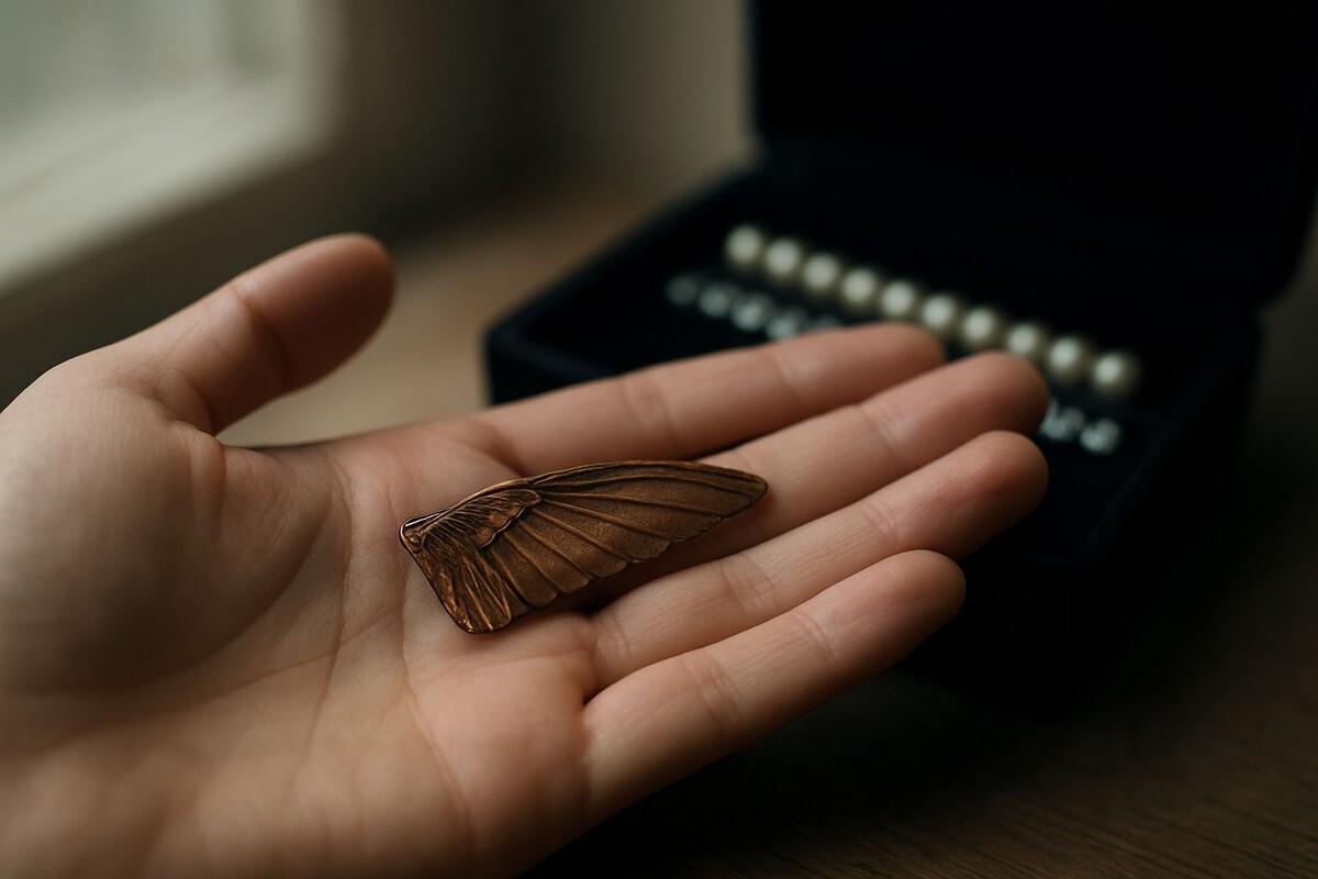 В дальнем углу, у высокого окна, заваленного светом, стоял небольшой столик. На нём, на куске неотбеленного льняного полотна, лежали крошечные бронзовые фигурки. Птицы, листья, странные полураскрытые бутоны. Ева наклонилась. Её взгляд уловил не идеальную форму, а изъян. Это было крыло. Одно-единственное, сломанное, с тончайшей, почти невидимой трещинкой. Оно было размером с её ноготь и выглядело не брошью, а чьей-то потерянной частью.