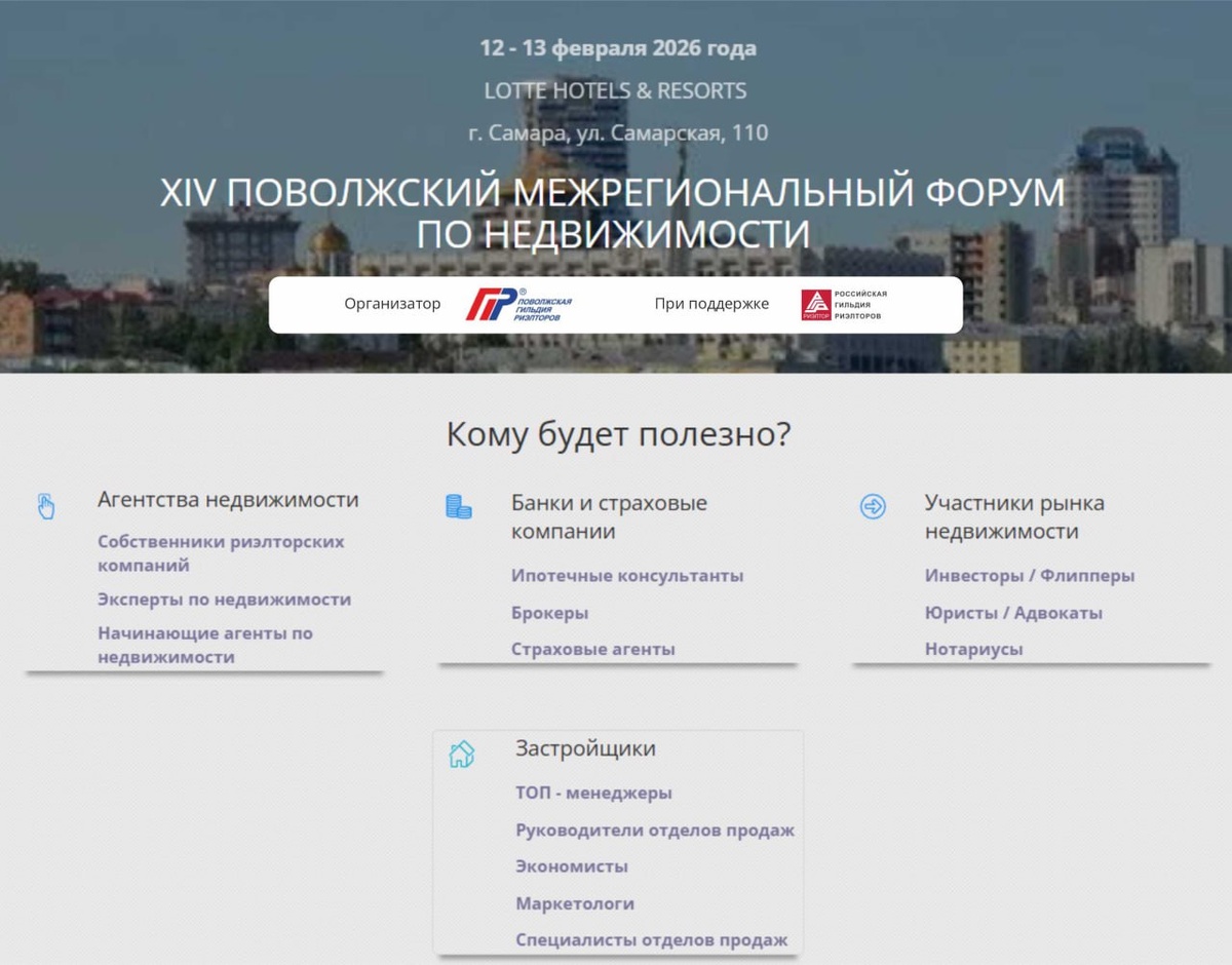 12-13 февраля 2026 года в Самаре состоится ХIV Поволжский межрегиональный форум по недвижимости