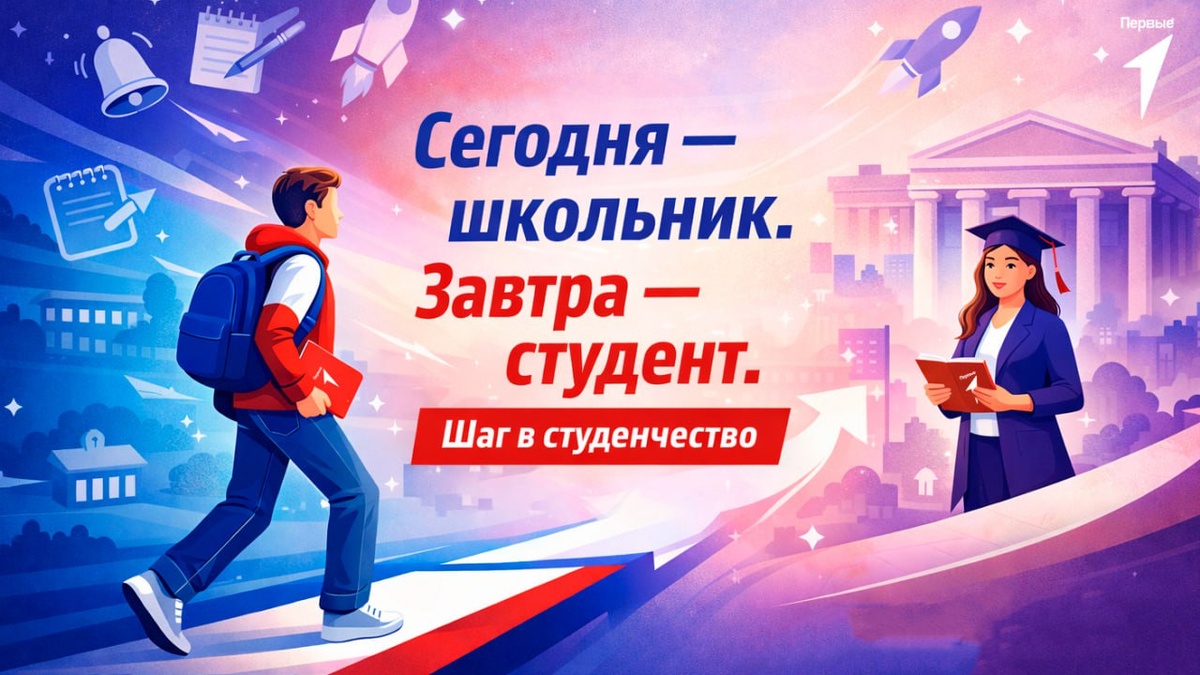 Уже в это воскресенье мы отмечаем День российского студенчества. Праздник про тех, кто выбирает путь, пробует новое и шаг за шагом собирает свое будущее из знаний, опыта и смелых решений. ✨ По этому поводу приглашаем присоединиться к Всероссийской акции «Шаг в студенчество» — это простой и интересный способ заглянуть в студенческую жизнь еще до поступления. Как можно участвовать? ⭕️ «Классная встреча» со студентами. Живой разговор о вузах и колледжах, настоящие истории про учебу, сессии и студенческие будни. Можно спрашивать все, что давно хотелось узнать. ⭕️ Для младших школьников — творческий формат «Город профессионалов». Коллаж о профессии мечты, где фантазия важнее правильных ответов. Присоединяйся к акции, делись своими результатами в социальных сетях с 20 по 25 января и обязательно добавляй официальные хэштеги, чтобы твой шаг в будущее увидели: #ШагВСтуденчество #ДвижениеПервых #НавигаторыДетства #Росдетцентр