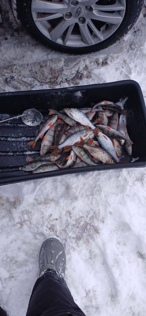 На лед вышел темно было. На балансир и блесну тишина, размотал мормышку и вроде как пошло. Итог на фото. Пять лунок с 7 до 14