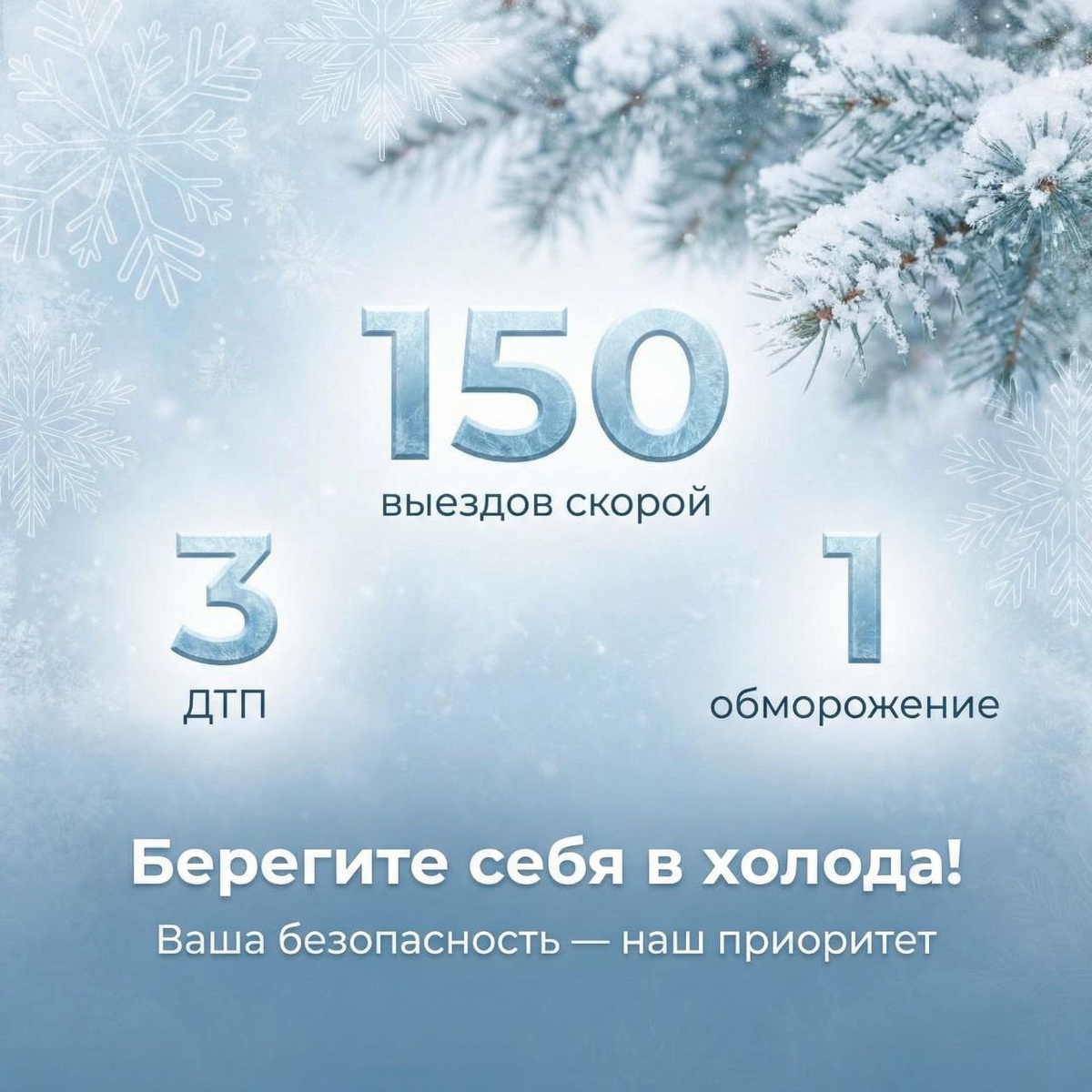С 12 по 18 января бригады скорой помощи выполнили 150 выездов. К сожалению, было зафиксировано несколько серьёзных случаев: 2 инсульта, 2 инфаркта и 3 ДТП с 4 пострадавшими. Также медики помогали пациентам с высокой температурой, обморожениями и перевозили больных в специализированные медицинские центры республики. Всего за неделю в приёмное отделение обратились 165 человек, из них 136 были госпитализированы. Анализ прошедшей недели напоминает нам о сезонных рисках. Пожалуйста, будьте осторожны! В зимний период особенно важно: · За рулём: соблюдайте скоростной режим и дистанцию, не садитесь за руль при плохом самочувствии. · На улице: используйте светоотражающие элементы в тёмное время суток и тёплую одежду, защищающую от мороза и ветра. · Оказывая помощь: не пренебрегайте собственной защитой — даже кратковременный контакт кожи с холодом может привести к обморожению. Берегите себя и своих близких, соблюдение этих простых правил поможет сохранить здоровье.