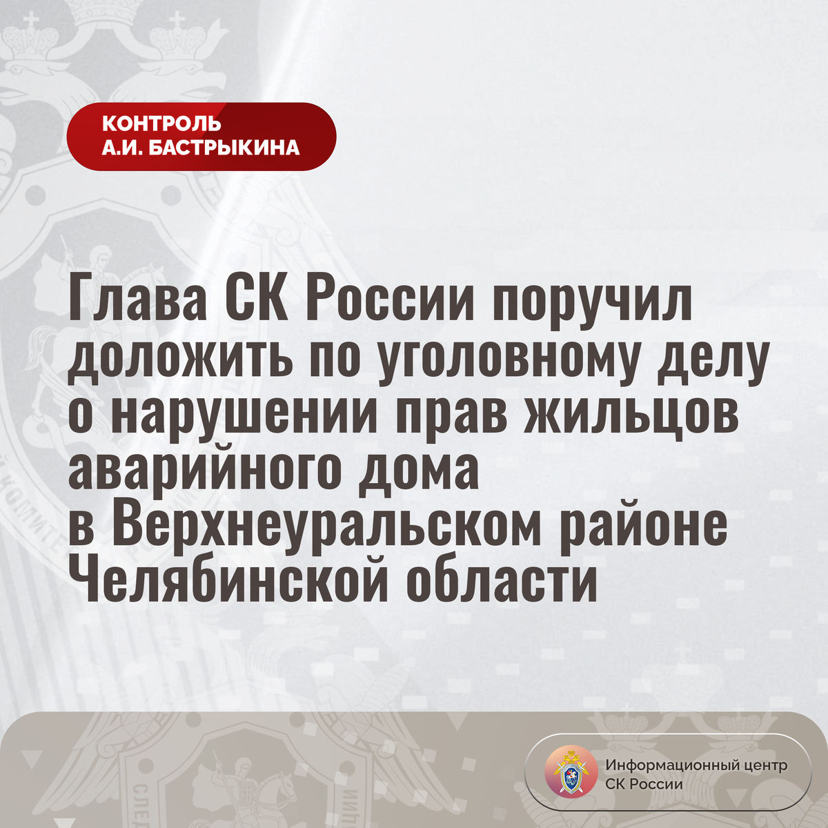 Глава СК России поручил доложить по уголовному делу о нарушении прав жильцов аварийного дома в Верхнеуральском районе