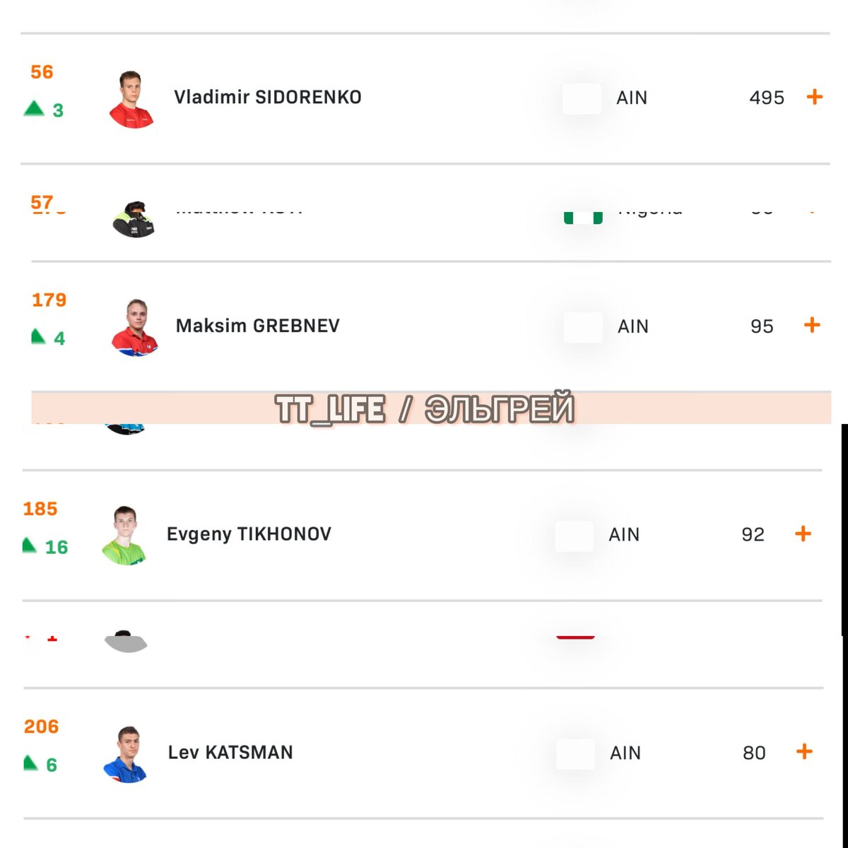🆙 Российская сборная продолжать лезть наверх в мировом рейтинге! С нового года рейтинг ITTF стал обновляться по-человечески в понедельник, а не как раньше, во вторник. По итогам WTT Star Contender Doha все спортсмены получили прирост в очках. - Владимир Сидоренко WR56(+3) - Максим Гребнев WR179(+4) - Евгений Тихонов WR185(+16) - Лев Кацман WR206(+6) - Элизабет Абраамян WR124(+15) - Влада Воронина WR186(+10) - Мария Тайлакова WR252(+32)