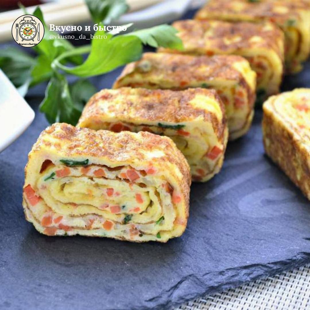#завтрак #15мин 🕒 Время приготовления: ~15 минут Порции: 1–2 Сложность: легко 🧾 Ингредиенты: 🟠Яйца — 3 шт. 🟠Соевый соус — 1 ч. л. 🟠Морковь — ½ шт. 🟠Растительное масло — 3–5 г 🟠По желанию: ветчина, сыр, зелёный лук 🍴Приготовление: 1. Яйца взбейте венчиком с соевым соусом до однородности. 2. Морковь натрите на мелкой тёрке или нарежьте очень мелким кубиком. Зелёный лук мелко нарежьте. 3. Разогрейте сковороду на среднем огне, смажьте растительным маслом. 4. Вылейте тонкий слой яичной смеси, как на блинчик. Когда омлет слегка схватится, аккуратно сверните его рулетом. 5. Сдвиньте рулет к краю сковороды, на свободное место добавьте ещё немного яичной массы. 6. Снова сверните рулет, захватывая новый слой. 7. Повторяйте, пока яичная масса не закончится. Вкусно и Быстро | Мы в Мах 📲