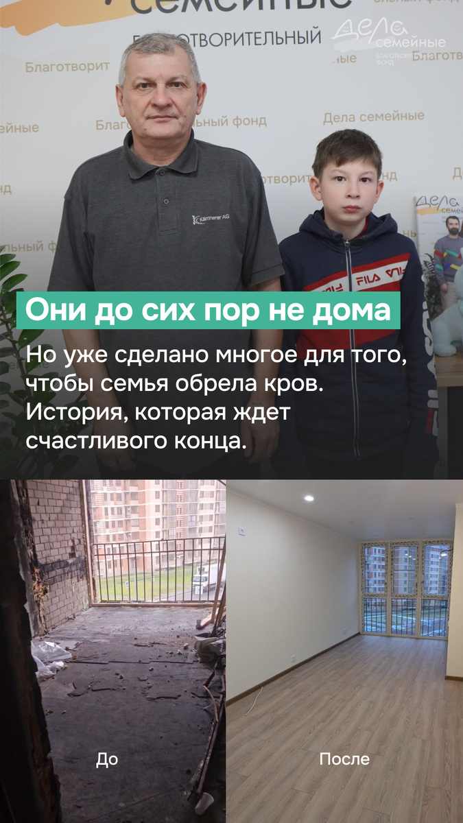 Несколько месяцев назад у отца и сына Ершовых сгорела квартира. С тех пор Максим и Аркадий живут в чужом доме, где им временно разрешила пожить знакомая. Мы с вами активно помогаем семье, и во многом благодаря вашей финансовой поддержке уже выполнена самая сложная часть работы: заменены коммуникации, окно, смонтирован теплый пол и полностью восстановлена электрика.
