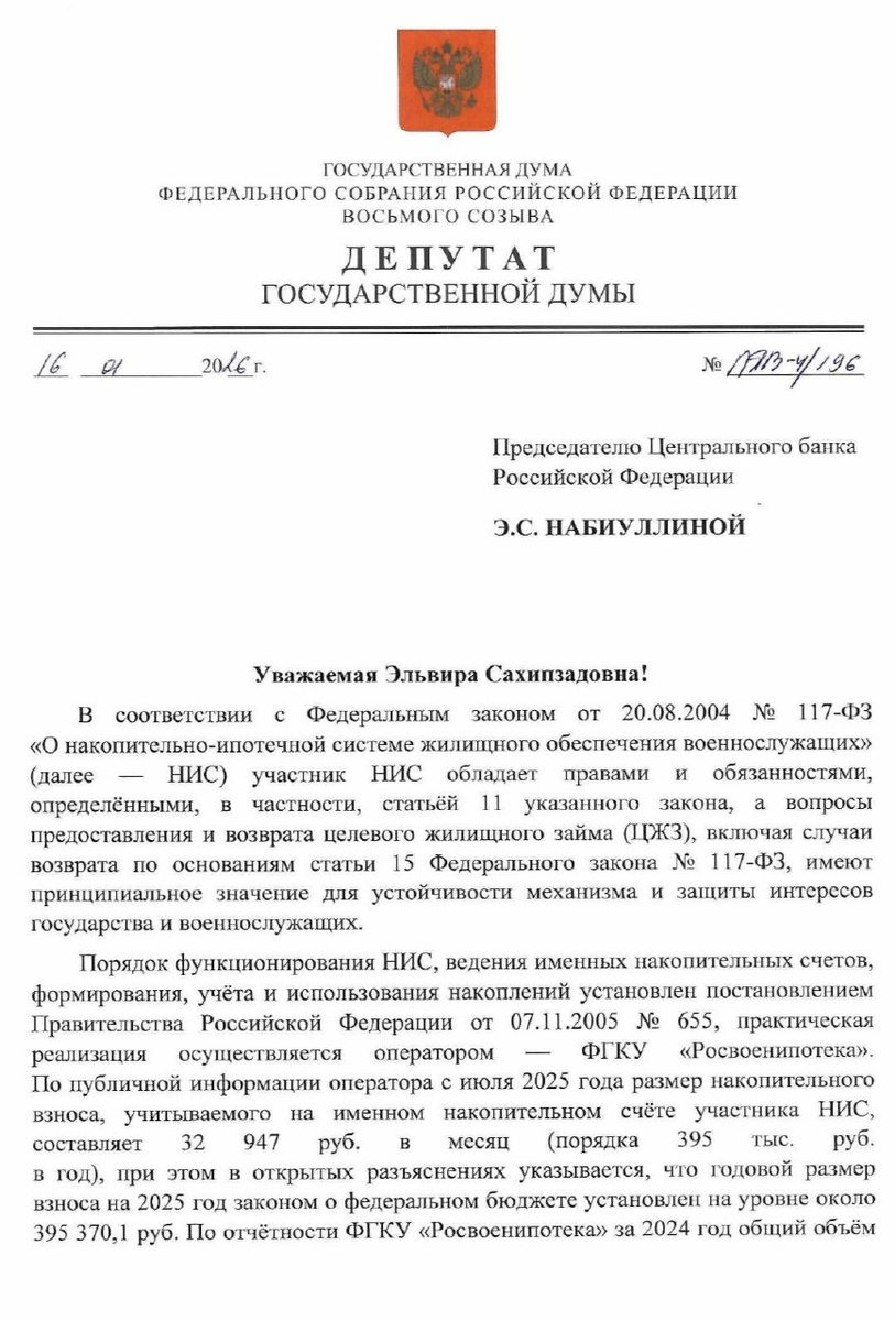 % Это повысит уровень жилищного обеспечения российских военных, укрепит репутацию военной службы и усилит ее социальную ориентированность. 📩Соответствующие письма направила главе Центрального банка РФ Эльвире Набиуллиной и министру обороны РФ Андрею Белоусову. 📊Сейчас военнослужащим нужно внести 20% стоимости жилья, чтобы получить ипотеку в рамках накопительно-ипотечной системы. Из-за этого многие военные вынуждены копить дополнительные средства или откладывать покупку квартиры, что снижает доступность жилья и делает службу менее привлекательной. Такая система военной ипотеки действует с 2004 года. Военнослужащие ежемесячно делают накопления на индивидуальных счетах, которые потом идут на целевой жилищный займ. ℹ️По данным "Росвоенипотеки", к концу 2024 года общие накопления достигли почти 904 млрд рублей, а жилищные средства получили более 76 тыс. участников. За год выросла и задолженность участников по ипотеке - с 875 млрд до почти 980 млрд рублей. В то же время стоимость акти