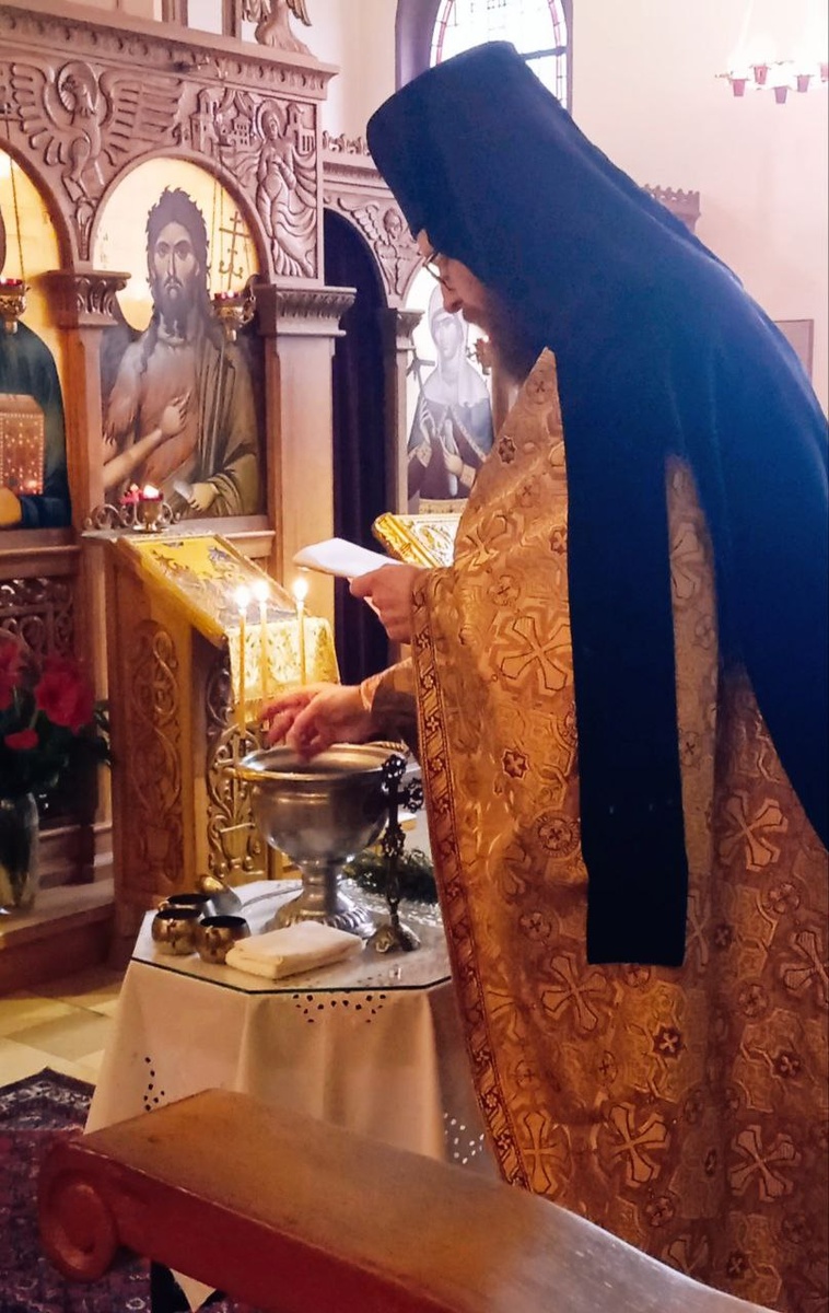 Елицы во Христа креститеся... Крещенский сочельник стал последним днём в монастыре. Мало сказать, что прощаться было грустно: как-то и не верилось, что это нужно. Казалось таким естественным начинать день с молитвы в домовом храме, встречать лица, ставшие как будто родными. Видеть из окошка лес вокруг монастыря с невысокими "кучерявыми" деревьями. А возвращаться в келью под яркими звёздами... Литургию отслужили на час раньше, чтобы мы успели на великое освящение воды... Ради нас двоих! Разумеется, масштабы здесь иные: нет огромных цистерн и толп бабушек с пятилитровками. Священник освятил лишь один медный сосуд. После службы сделали по нескольку глотков из небольших чаш. А кропил отец Харлампий не кистью, а веточкой можжевельника. Торжественность службе придавал ещё и звон бубенцов. Это греческое кадило - каце́я. Такие раньше были и у нас, перекочевав из Византии. Необыкновенно бодрит и заряжает радостью! К слову о Крещении: мы застали в монастыре это таинство. На Святках крестилс