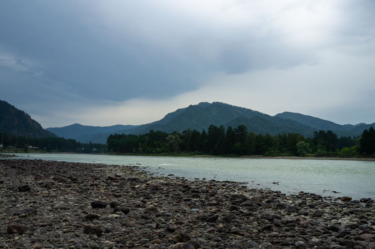 Часть 7. Все истории здесь. Помните, в музее смотрели макет Чуйского тракта? Высшая точка — Семинский перевал. Ну да, раз река Сема, то и перевал Семинский. Далековато, 238 километров от Бийска, если туда и обратно, получается примерно как дневной перегон, когда сюда ехал. И все-таки, на такой высоте я никогда еще не был, больше 1700 метров. Нельзя же не посмотреть. Ладно, ставлю задачу: выезжаю в 10 утра, а там посмотрим. Если до двух часов не доберусь, поворачиваю назад. День сегодня пасмурный, низкие тучи ходят над вершинами, иногда покапает дождик. И сами горы выглядят совсем по-другому. Грозно и величественно. Жалко, горное небо не будет видно. Но может быть, как раз в такую погоду и почувствуешь, что это настоящий горный перевал. А расчет, похоже, оказался точен. Времени час, въезжаю в Шебалино. Судя по карте, отсюда уже недалеко. И вот, наконец… ВНИМАНИЕ!