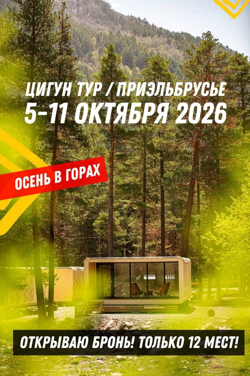 Занятия цигун с видом на горы + свободное время для прогулок и экскурсий. Дата: 5 - 11 ОКТЯБРЯ 2026✨ Цена: 39000 ₽ (При бронировании до конца февраля) Всего: 12 мест Включено: 🏠 Проживание в уютных домиках со всеми удобствами. 🧘♀ Занятия цигун (утром и вечером по 2 часа) 🚶♂ Свободное время для отдыха, прогулок, посещения экскурсий и подъема на Эльбрус. Подробности и бронь тут: https://cigunonline.com/p/elbrus