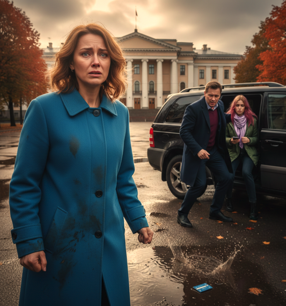 Галина не успела выставить ладонь. Синий прямоугольник шлепнулся в грязную жижу прямо у её сапога. Брызги испачкали подол её голубого пальто.