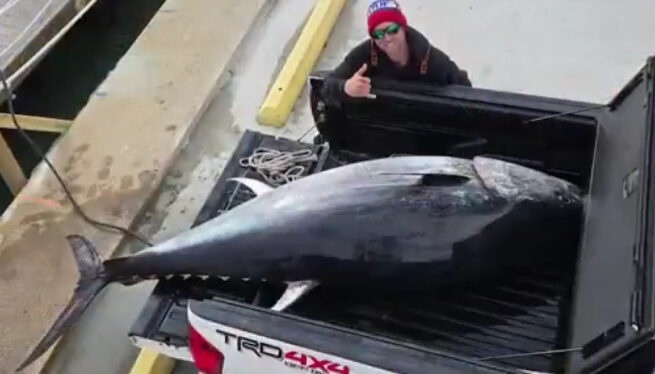 У берегов американского штата Вирджиния рыбаки судна High Hopes выловили гигантского синего тунца весом 379 кг. По словам капитана Дэвида Райта, в последние дни команде не везло, и они возвращались без улова. Решив изменить маршрут, он повел судно подальше от берега — и именно там произошла удача. Чтобы вытащить рыбу из воды, понадобилось около полутора часов. Измерения показали, что длина пойманного тунца составила 274 сантиметра, а вес превысил прежний официальный рекорд Вирджинии. Подписывайтесь на AVS / Оставляйте бусты