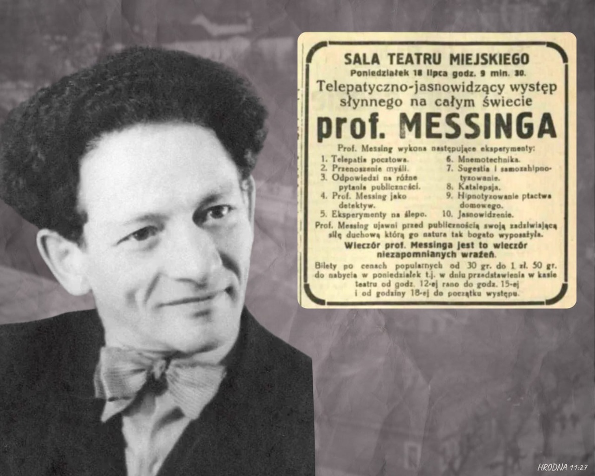 Вядомы сваімі прадказаннямі, эксперыментамі з тэлепатыяй і гіпнозам, Месінг наведваў горад некалькі разоў. У адрозненне ад астролагаў, ён ладзіў калектыўныя выступы. Адзін з іх прайшоў у Гродне 18 ліпеня 1938 года. Квіток каштаваў ад 30 грошай да паўтары злотага. З пачаткам Другой сусветнай вайны ў 1939 годзе Месінг зноў апынуўся ў Гродне, які быў заняты савецкімі войскамі. Ён трапіў сюды разам з яўрэйскімі бежанцамі, што ўцякалі ад нацыстаў з Польшчы. Паводле легенды, Месінг быў заключаны ў мясцовую турму, але здолеў загіпнатызаваць ахоўніка і пакінуць камеру. У сваіх успамінах прарок узгадваў пра выступ у Гродне пасля таго, як горад перайшоў да Саветаў. Месінг, які ўжо добра ведаў рускую мову, але часам казаў "поўную лухту", аднойчы пасля спрэчкі ў гасцініцы выйшаў да гледачоў і звярнуўся да іх: “Панове таварышы”. Аўдыторыя ўспрыняла гэта як жарт і засмяялася, бо Гродна зусім нядаўна быў часткай Польшчы. Сам Месінг прызнаваўся, што зусім не ўмее жартаваць. 🔥 Ваш унёсак у гісторыю