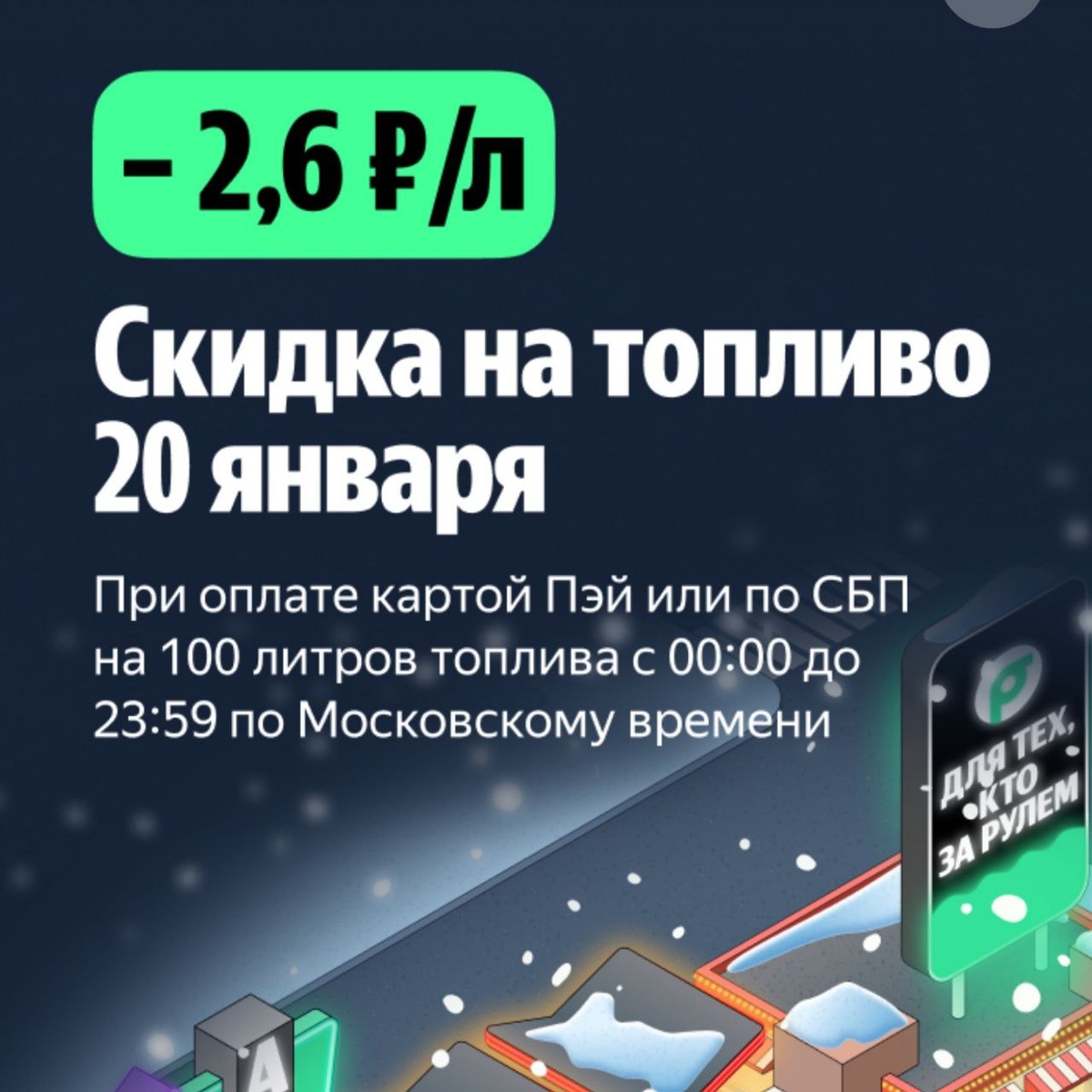 👉-2.6 рубля с литра, 20 января, при оплате через пэй или сбп