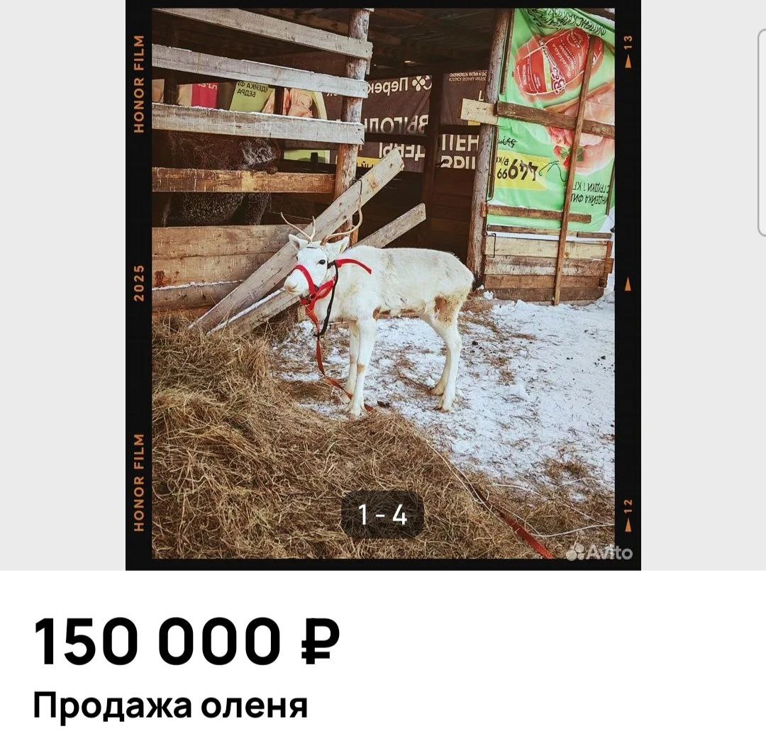 Ее зовут Изюминка. Животное покупали для работы в новогодние праздники — чтобы катать людей в санях. Однако праздники закончились, бизнес не пошел, и от оленихи решили избавиться. По словам девушки, до этого она много лет занималась прокатом животных — это не единственный ее олень. Помимо них она также держит лошадей и пони — в будущем ферму планируют продать. Причина — невыгодный бизнес. Ранее у девушки была еще одна олениха, но ее загрызли собаки, пока та была на выпасе. При этом у животных нет ветдокументов и прививок. Женщина говорит, что не видит смысла связываться с ветеринарами. Однако автор объявления утверждает, что животное абсолютно здорово. 📍Подписаться | Предложить новость | Дать «буст»