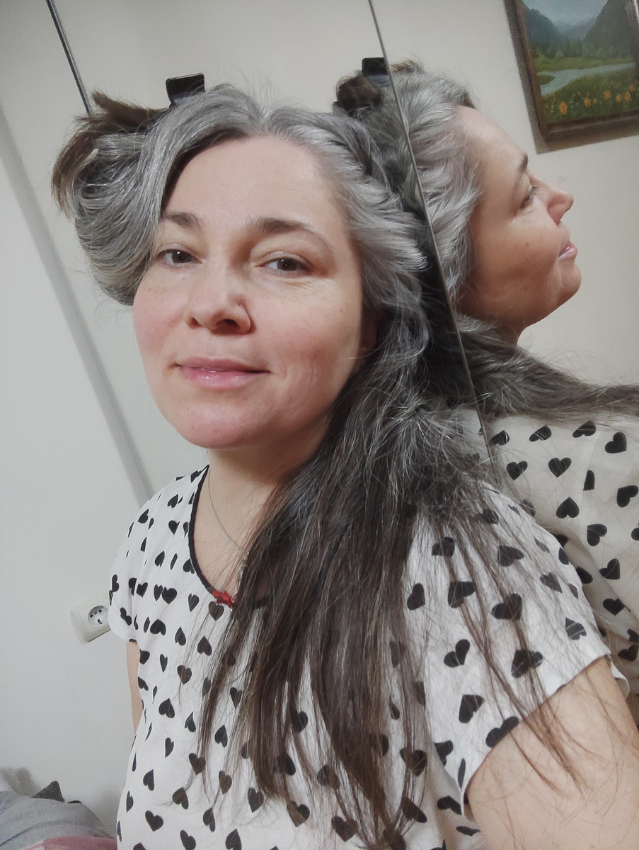 Казалось бы, смотри обучающее видео и старайся, все получится, косы почти в кармане... Но почему тогда, я такая уставшая стою у зеркала и на вас смотрю, пытаясь хотя бы одну такую сестричку-косичку сделать? Руки не от туда растут? Волосы слишком короткие для кос? Плохому танцору...Ну вы поняли, всегда, что-то жмет в штанах... Ладно, одну умеешь и этого достаточно! Утешает меня то, что по плану делается и делается, как раньше. То есть, одна коса то, как была, так и живет! Я еще ленточку вплела... Но вот, что делать, если я хочу две? И хотелка у меня такая...И руки уже больно и пора отложить на другой раз, как говорят обычно. Видите начинаю и тут же кончаю, я хотела не так быстро)). А удовольствие протяжное, а кайф, его в таком "микро" начале нельзя полноценно испытать. Пришла к мнению, что буду еще пробовать и пытаться! Посмотрю другие видео, но рано или поздно вопрос этот закрою для себя. потому, что косы в моем положении очень удобные, я рвусь в путешествия и это великолепное решение