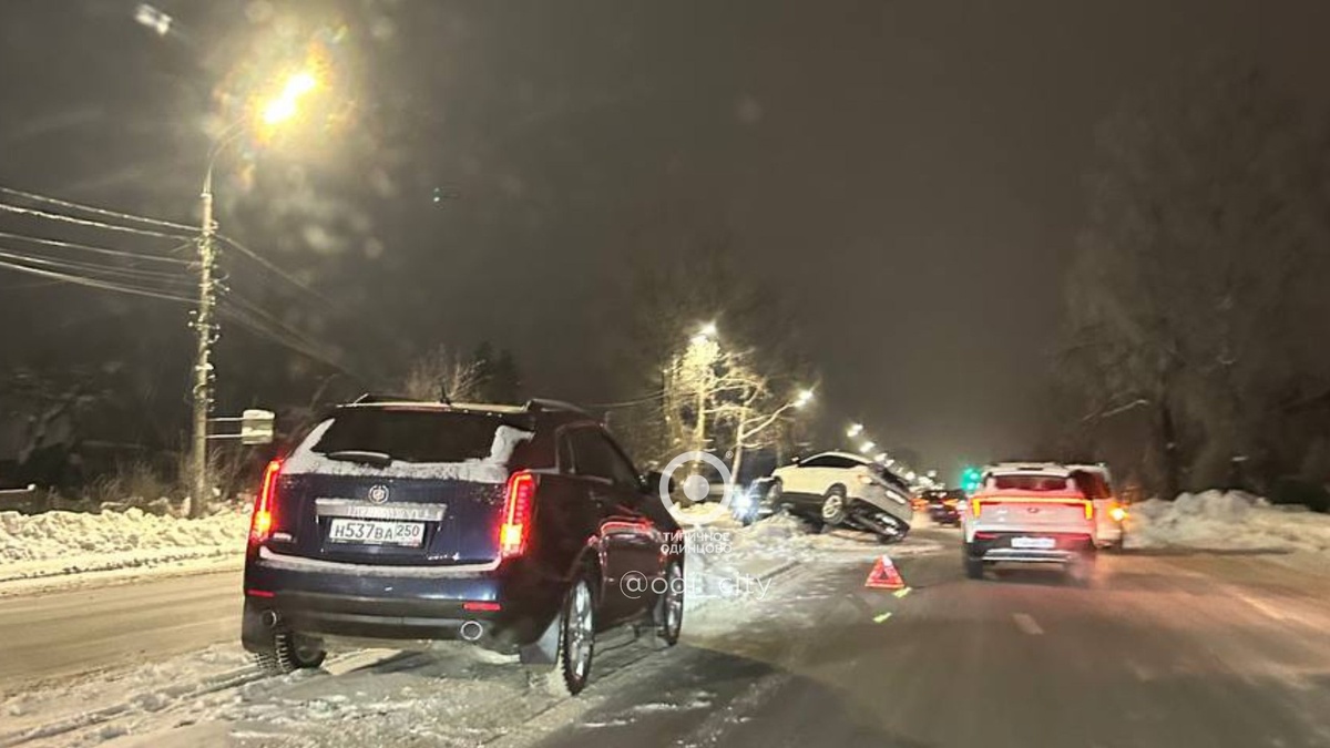 На Можайском шоссе в Малых Вяземах разделительный трос удержал легковушку от вылета на встречную полосу