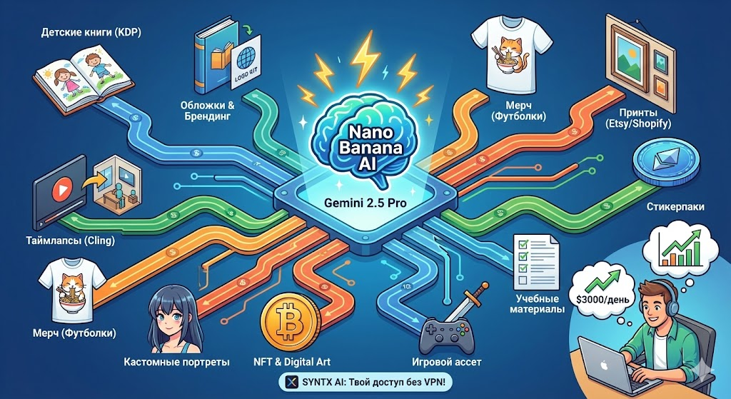 Суть в том, что в 2026 году побеждает тот, кто быстрее тестирует гипотезы. Сегодня попробовал книжки-раскраски, завтра - дизайн обложек, послезавтра - видео-таймлапсы. Nano Banana дает тебе все инструменты для этого, а современные сервисы доступа убирают лишнюю головную боль с оплатой.
