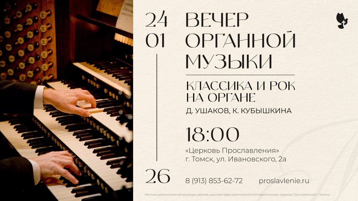 🔸 🎹 24 января в 18:00 пройдет вечер органной музыки! В программе — сочинения разных эпох: от произведений Баха, Букстехуде и Генделя до обработок известных композиций групп The Beatles, Pink Floyd, Rolling Stones. На органе играют: • Дмитрий УШАКОВ • Капитолина КУБЫШКИНА 📍Место: «Церковь Прославления», г. Томск, ул. Ивановского, 2а 👨👩👧👦 Вход свободный!