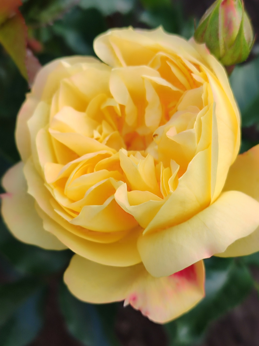 Куст обещают компактный, выразительный— высотой 70−90 см, шириной 35−40 см. Здесь пожалуй я не соглашусь, ширина как минимум 60 см. Он хоть и плотный по отношению ветвей, но раскидистый. У розы густая, аккуратная крона. Молодые побеги отливают красноватым тоном, будто намекая на грядущее буйство цвета.