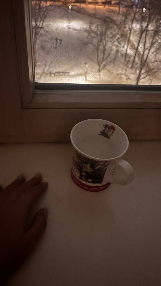 Первое — не кофе. А просто посмотреть в окно. Снег за стеклом. Тепло внутри.