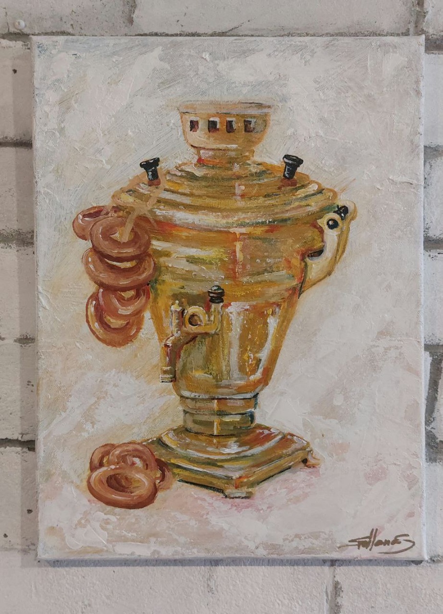 "Самовар с баранками" 40/50 (холст на подрамнике, акрил)