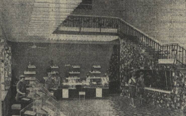 Магазин «Кристалл» Вчера, после ремонта, магазин «Кристалл» вновь распахнул перед покупателями свой двери. В нем легкое из оргстекла оборудование, стены выполнены из уральских поделочных камней, пол — из мрамора и мраморной крошки. Внизу, в салоне, продаются золотые изделия. На антресолях — украшения по образцам. Там же расположен скупочный пункт дрогоценных камней и металла. И визитная карточка эффектна. Витрины имеют легкую ажурную форму, с вкраплениями уральских камней. Газета Вечерний Свердловск. 1970 год. № 184(3866). 6 августа. Фото В. Степанова
