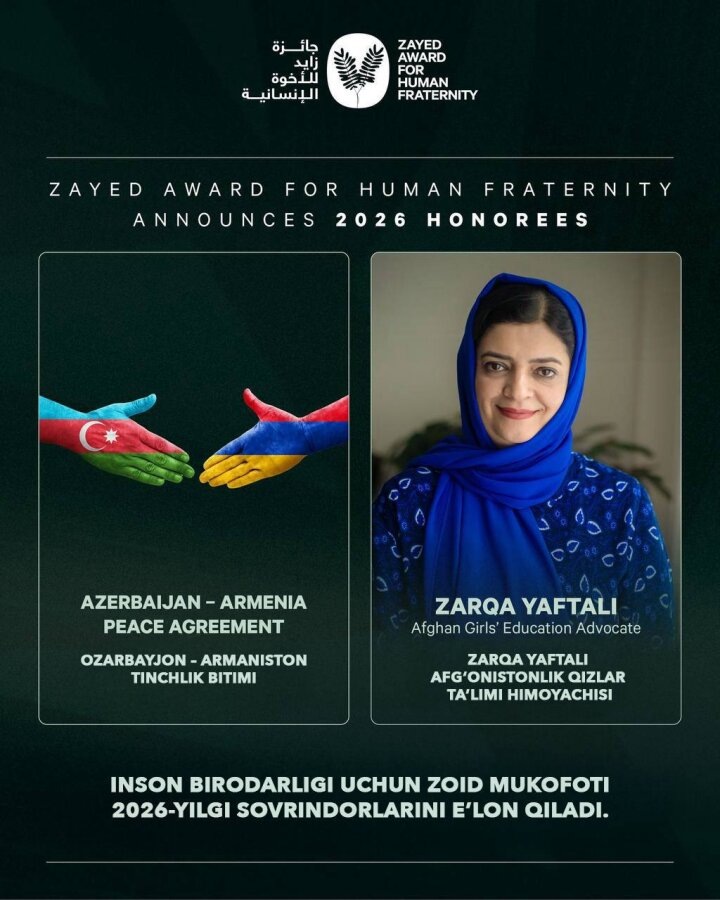 В официальном Telegram-канале Саиды Мирзиёевой опубликовано сообщение о её участии в работе жюри международной премии шейха Заида "Человеческое братство". Она отметила, что считает для себя большой честью быть причастной к этой работе, и поздравила лауреатов 2026 года.