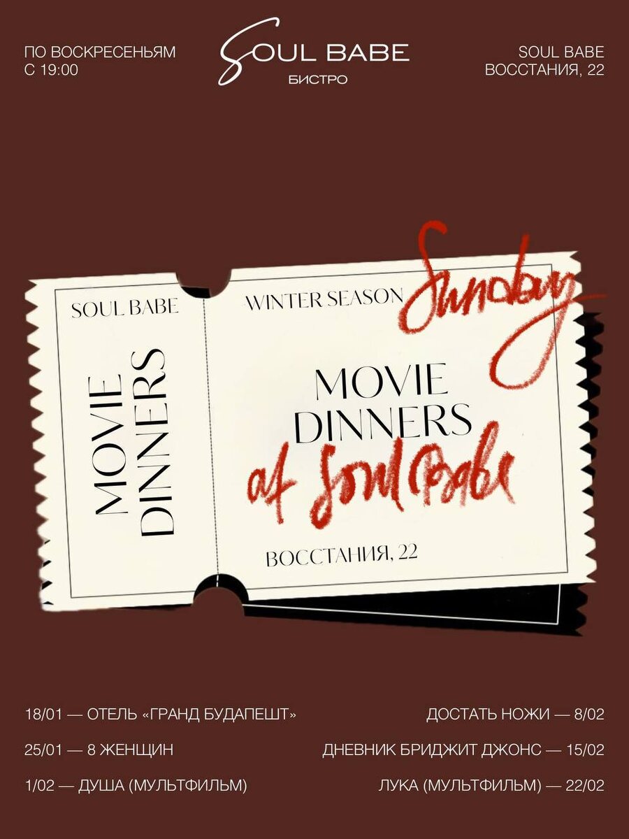 В Soul Babe выложили афишу зимних кинопоказов 🎄