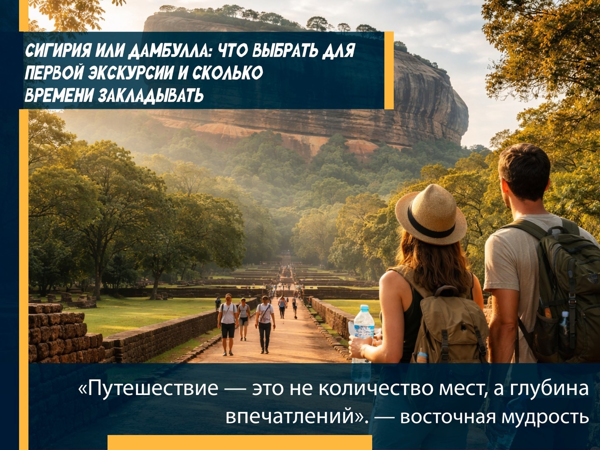 «Путешествие — это не количество мест, а глубина впечатлений». — восточная мудрость ✅ Если вы планируете первую экскурсию в центре Шри-Ланки, выбор чаще всего стоит между Сигирией и Дамбуллой — и оба места достойны внимания. ✅ Сигирия — легендарная Львиная скала. Подъём занимает около 2–2,5 часов с остановками. Потрясающие виды, фрески и ощущение масштаба. Подойдёт тем, кто любит активные маршруты. ✅ Дамбулла — пещерный храмовый комплекс. Осмотр занимает 1–1,5 часа, маршрут легче, подходит для спокойного темпа и первого знакомства с буддийской культурой. ✅ Если время ограничено — выбирайте Дамбуллу. ✅ Если хотите вау-эффект и готовы к подъёму — Сигирия станет главным впечатлением поездки. ✅ Идеальный вариант — совместить оба объекта за один день, заложив 5–6 часов с дорогой. Правильный выбор первой экскурсии задаёт тон всему путешествию. Главное — подобрать маршрут под свой ритм, а не... Тур1 | поиск туров → https://t...