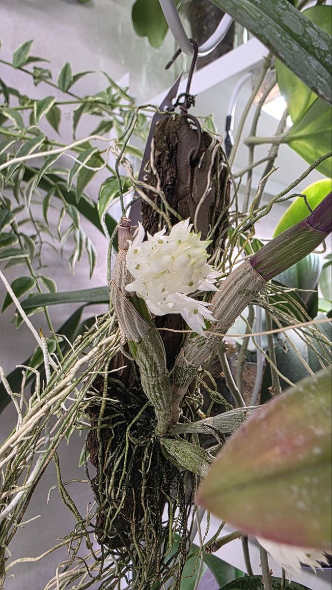 Трех микроулиток нашла. Думаю, может его и от улиток чем-нибудь бабахнуть? Или на блоке они сильно не живут? Пока не придумала куда его повесить, чтобы прям лампами светить, у него ж борода корней еще есть, оказывается. Кстати говоря, БронзМейден из стрима на блоке чувствует себя очень даже ничего, корешок в мох пошел закапывать, тургор отличный. Все таки блоки - это хорошо) Надо отдельную блоко-зону придумать, что ли...