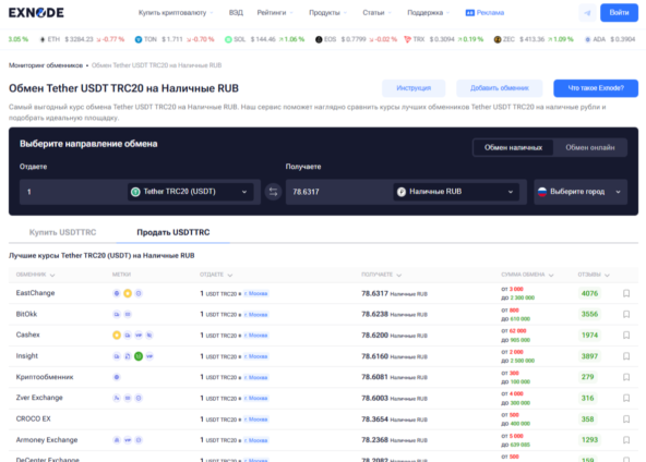 При этом важно не начинать с конкретного обменника, а сначала оценить рынок целиком. Для этого удобно использовать сервис мониторинга Exnode — он помогает сравнить форматы, отсеять нестабильные варианты и выбрать решение, подходящее именно под крупную сумму и нужный город. Такой подход экономит не только деньги, но и время, а главное — снижает количество рисков ещё до начала сделки.