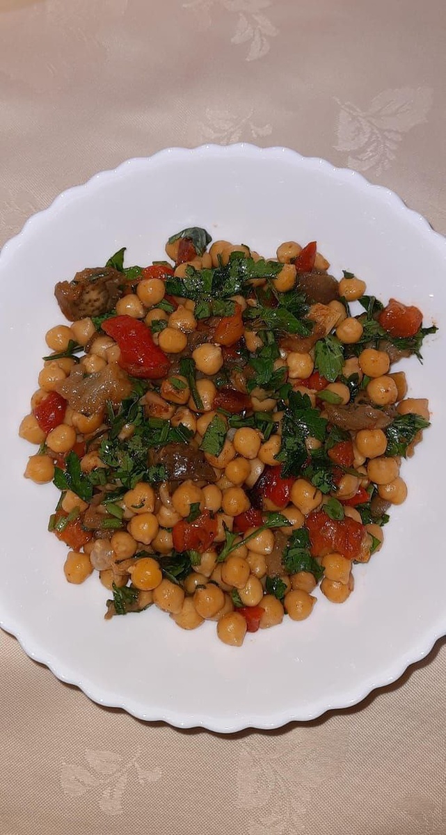 Фото-рецепт от Екатерины Краснобабцевой Ингредиенты: - 200 грамм нута отваренного; - 1 баклажан; - 1 красный болгарский перец; - головка чеснока; - 50 грамм петрушки; - 1/2 ч.л паприки; - 3 ст.л масла оливкового; - сок 1/4 лимона; - соль, перец по вкусу. Приготовление: 1. Разогрейте духовку до t=200°С. 2. Срежьте верхушку с головки чеснока и сбрызните оливковым маслом. 3. Выложите баклажан, болгарский перец и чеснок на противень. Несколько раз проткните баклажан вилкой. 4. Запекайте около 35 минут, или пока перец слегка не почернеет, а баклажан не станет мягким. 5. Сложите готовые овощи в пакет, когда остынут, снимите кожицу с перца и баклажана. 6. Нарежьте запеченые овощи небольшими кубиками. 7. В салатнике соедините нут, нарезанные овощи, петрушку, зиру и паприку. Выдавите зубчики чеснока из шкурки и добавьте их к нуту. 8. Добавьте лимонный сок и оливковое масло, соль и перец. Все смешайте. Можно подавать на хлебце. Ангела за трапезой! 🕊 Благая весть ❄️❄️❄️❄️❄️❄️ #Постныйстол