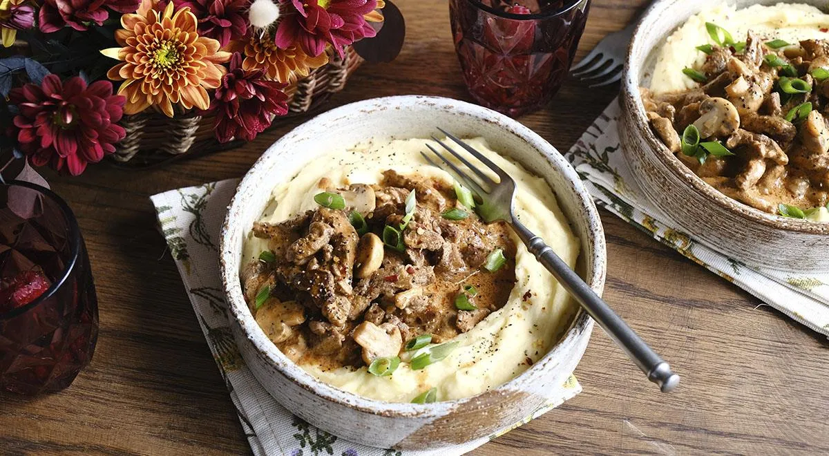 Бефстроганов, он же "бёф а ля рус", он же "говядина по-строгановски" - пожалуй, одно из самых известных во всем мире блюд русской кухни. Названо оно в честь графа Александра Григорьевича Строганова и по основной версии, придумал блюдо его повар, когда решил облегчить жевание мяса графу. Граф очень любил клопсы (это такое блюдо из говядины), но куски там крупные и жевать их было тяжело. Повар же нарезал мясо соломкой, объединив французский стиль приготовления (нарезка и обжаривание) с русским (подача мяса прямо в соусе, а не отдельно). Блюдо вышло превосходное, что уж сказать! Но самое главное - оно очень простое в приготовлении, в чем рекомендую убедиться самостоятельно. - 600 г говядины (вырезка или тонкий край)