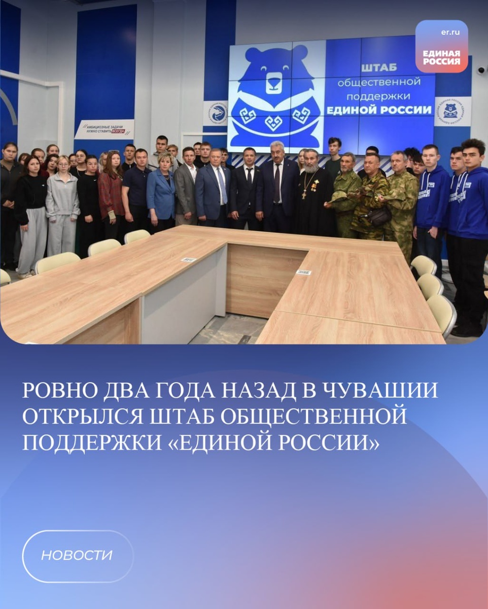». За это время он стал местом, куда приходят не только с вопросами и проблемами, но и с инициативами. Здесь готовы выслушать, помочь советом и вместе найти решение. Сегодня Штаб — это площадка, где реализуются гуманитарные, социальные и образовательные проекты. Мы не ограничиваемся разовой помощью, а выстраиваем системную работу, которая действительно меняет жизнь людей. Что регулярно проходит на площадке Штаба: • Личные приёмы граждан — от вопросов ЖКХ до юридических консультаций. Вместе с депутатами всех уровней, представителями министерств и ведомств помогаем находить решения. • Системная поддержка участников СВО и членов их семей. • Помощь многодетным семьям и тем, кто оказался в трудной жизненной ситуации. • Уже ставшие традиционными акции: «Собери ребёнка в школу», «Коробка храбрости», «Ёлка желаний». • Семинары, встречи и обучающие программы для тех, кто хочет получить новые знания и навыки. Результат этой работы — Штаб общественной поддержки Чувашии входит в число лучших