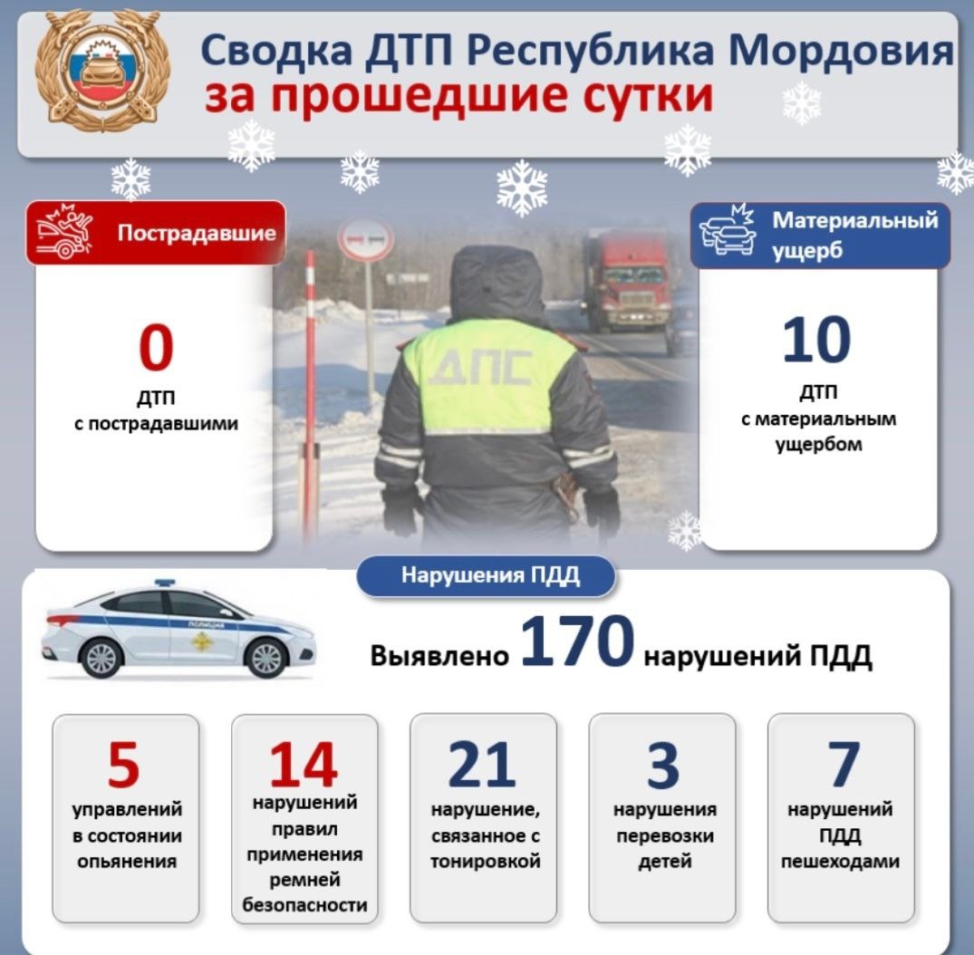 🚔 ГАИ Мордовии: 19 января 2026 года на дорогах республики не зарегистрировано ни одного ДТП с пострадавшими в них людьми