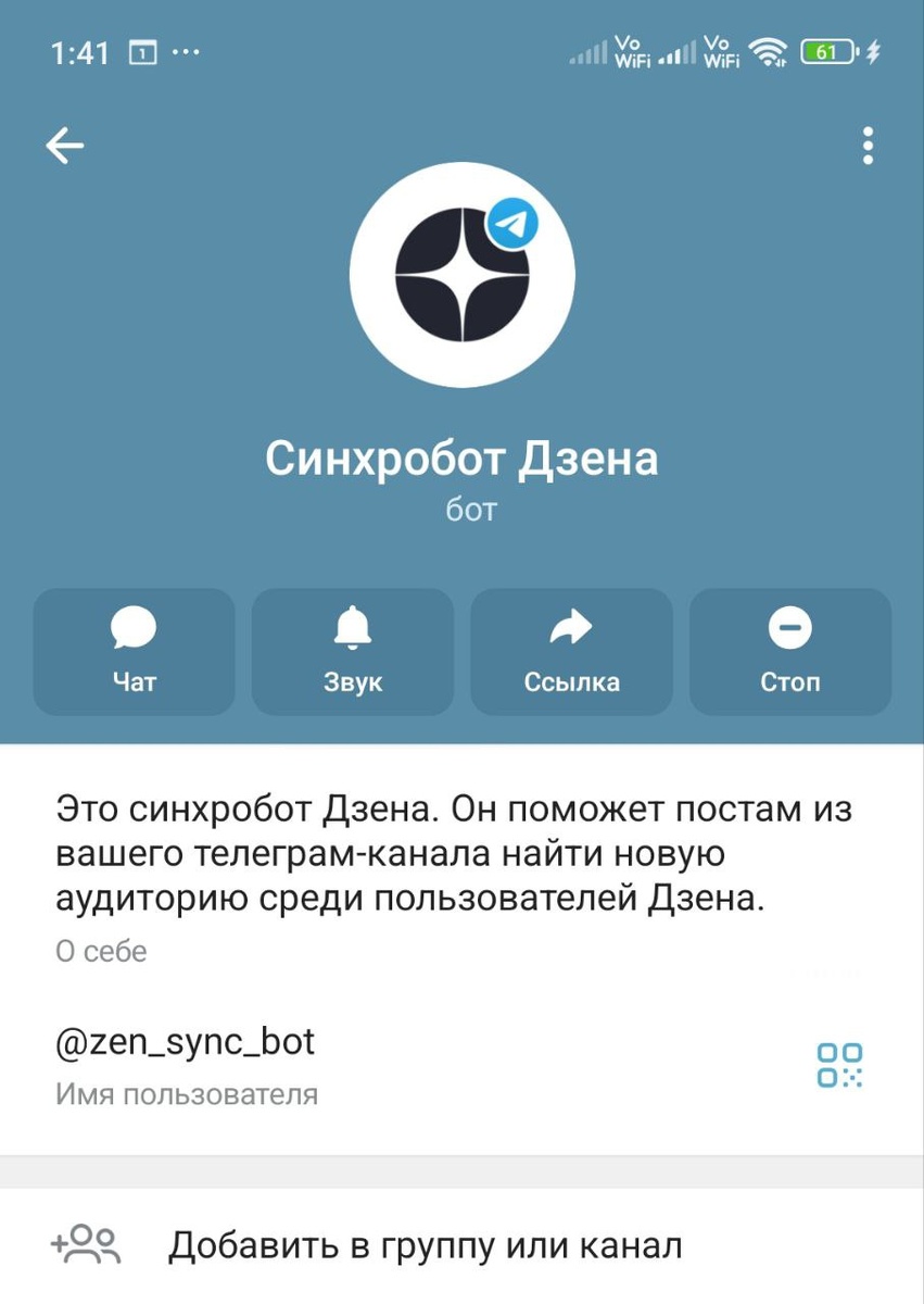 ? Я честно его сразу прокрутила к своему телеграмм-каналу, чтобы не делать двойную работу. 🕊️Итак какие плюсы синхробота: 🕊️Прикрутить его очень просто Нажать старт и дальше всё последовательно по инструкции выполняешь 🕊️Он действительно переносит твой пост в виде статьи в Дзен 🕊️Можно отредактировать пост в телеграмме, он так же перенесется 🕊️Главная картинка попадает в обложку статьи 🕊️Можно использовать статью из телеграмма как основу для доработки в дзене 🕊️Судя по статистике, даже при очень малом количестве подписчиков - есть очень хорошие переходы на сайт = потенциальные клиенты 🕊️Минусы синхробота 🕊️Ограничение по количеству знаков. 🕊️В телеграмме Сам текст — до 4096 символов с медиафайлами — 1024 символа для обычных пользователей и 2048 для Premium 🕊️В Дзен Посты (короткие записи, видны в ленте): до 4096 символов, можно добавлять фото, опросы, ссылки. Статьи (основной формат): нет жесткого лимита, но команда Дзена советует объем от 3500 до 6000 знаков с пробелами