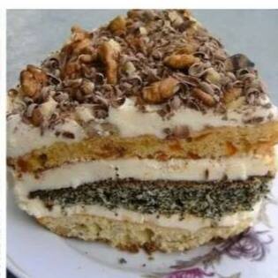 · Если нет времени на безе: Упрощенный вариант — испечь два бисквитных коржа, а в крем добавить 100 г измельченных орехов.