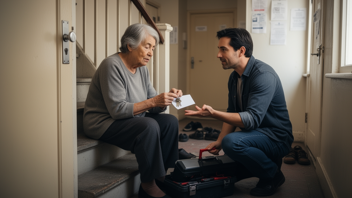 На следующий день замок заклинило окончательно. Нина Сергеевна вернулась поздно, с сумкой и папкой, и не смогла открыть дверь. Она стояла на площадке, прислонившись лбом к холодному металлу, и пыталась не паниковать. В голове мелькало: «Слесарь. Ключи. Деньги. Ночь». Она позвонила в аварийку, там сказали ждать мастера два часа.
