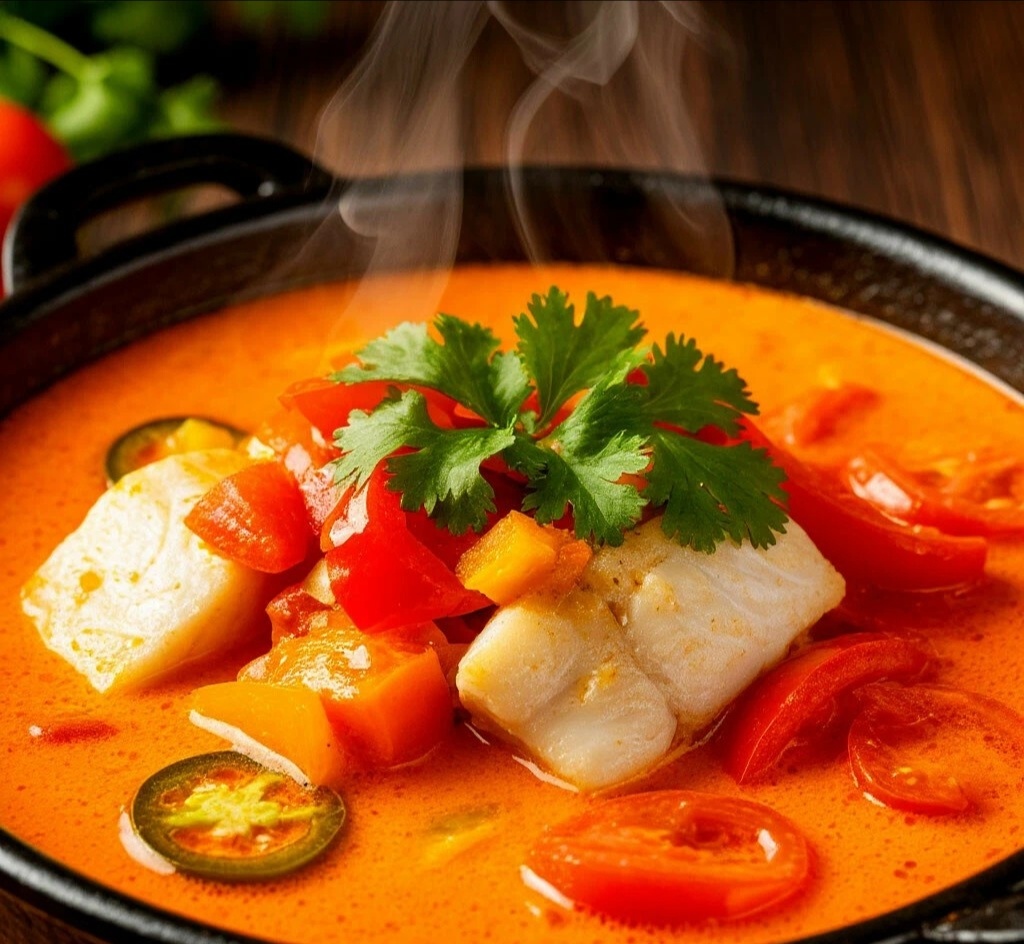 Мяу, мои любители морских приключений и ярких красок! 🌶️ Мокека — это визитная карточка бразильского побережья. Ароматное, наваристое рыбное рагу на кокосовом молоке с перцем и лаймом. Готовится в один горшок, наполняя кухню тропическими ароматами. Это суп-настроение!
