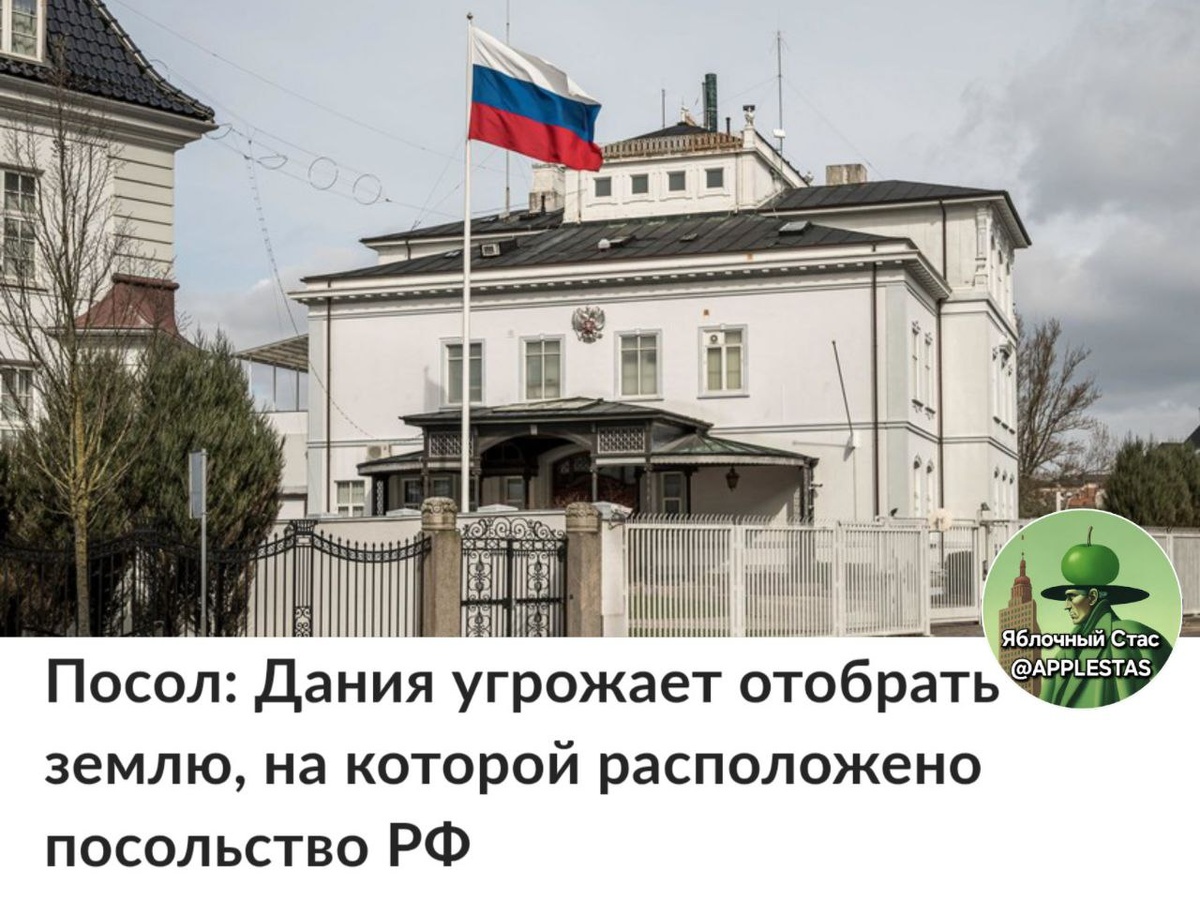 Вы не в ту сторону воюете, датчане. Интересный способ компенсировать отжатие Гренландии. Особенно с учетом факта, что в Москве тоже есть датское посольство. И земля под ним стоит намного дороже, чем в вашей тухлой деревне.