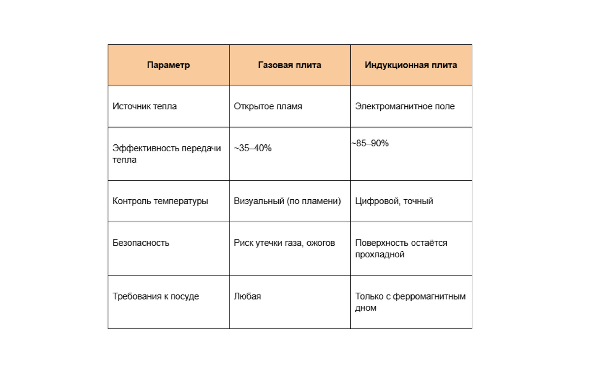 Факт: эффективность индукции достигает 90% — почти всё электричество превращается в тепло, в отличие от газовых, где большая часть энергии уходит «в воздух».
