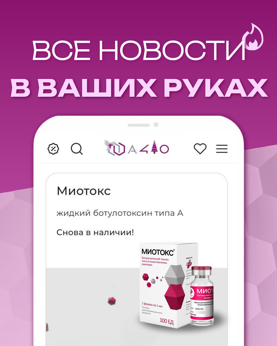 ! ✨ Хотите быть в курсе всех новостей, получать выгодные предложения и иметь доступ к экспертным знаниям в любое время? Тогда вам точно нужно приложение А410! 💰 Персональные акции и бонусы! Профессиональная косметология стала еще доступнее. 🚚 Оперативный заказ и отслеживание! Контролируйте доставку прямо в приложении. 📚 Экспертная база знаний! Инструкции, протоколы и рекомендации всегда под рукой. 🎓 Обучение в один клик! Записывайтесь на вебинары и мастер-классы, не выходя из приложения! Скачайте А410 прямо сейчас и откройте для себя новый уровень комфорта и эффективности в работе! ➡️🔔 iOS → https://clck.ru/3PaaQ2 Android → https://clck.ru/3PabuT RuStore→ https://clck.ru/3QR2by #Приложение_и_сайт #миотокс